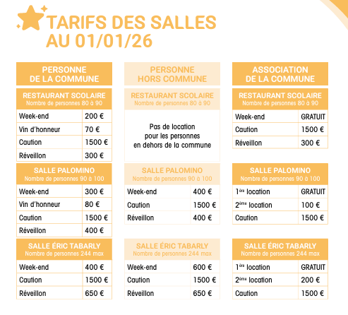 Pour toutes réservations, merci de contacter la mairie par mail ou téléphone
